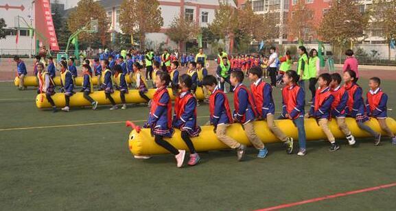 4—8人坐騎在充氣毛毛蟲(chóng)道具上,隊(duì)員雙手握住毛毛蟲(chóng)的固定把手,毛毛蟲(chóng)道具前方立于起跑線后,裁判發(fā)令后,隊(duì)員通過(guò)團(tuán)隊(duì)協(xié)調(diào)配合帶動(dòng)瘋狂毛毛蟲(chóng)游戲道具在跑道上快速行駛,裁判安排隊(duì)員注意毛毛蟲(chóng)道具不帶拖地行走,以防摩擦漏氣損壞毛毛蟲(chóng)道具,賽道長(zhǎng)度根據(jù)場(chǎng)地制定。以各參賽隊(duì)員所用的毛毛蟲(chóng)道具觸及終點(diǎn)線為計(jì)時(shí)停止,往返一次,用時(shí)最短者為勝。 ??獎(jiǎng)勵(lì)方法:取前三名,分冠亞軍。