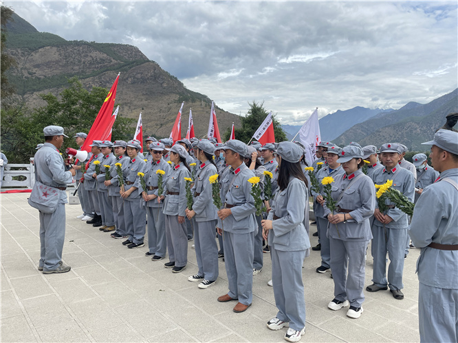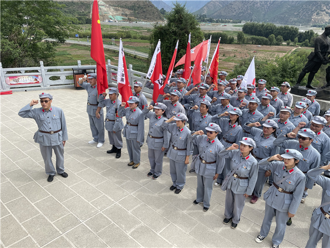 永安保險“學黨史 強信念 跟黨走”主題紅色教育活動在麗江石鼓紅色教育基地暨雄古紅軍村舉辦;近年來石鼓鎮推出了麗江“紅色文化”旅游活動,以追溯紅軍長征經過麗江并橫渡金沙江的這一段歷史為主題,開展了如:穿紅軍裝、瞻仰紀念碑、聆聽專業講解、重溫入黨誓詞、走長征路、誦革命詩詞唱紅歌、眺望渡口、吃憶苦思甜飯、聽革命后代講故事等等一系列的活動。