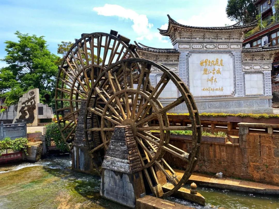 古城口的大水車、許愿林以及世界文化遺產的題字墻,就像是古城最明顯的標志一樣,每天有無數的游人來這里拍照打卡。在這些地方拍照一定要找準時機“穩、準、狠”地擺好動作按下快門,不然照片中很容易出現路人的身影。