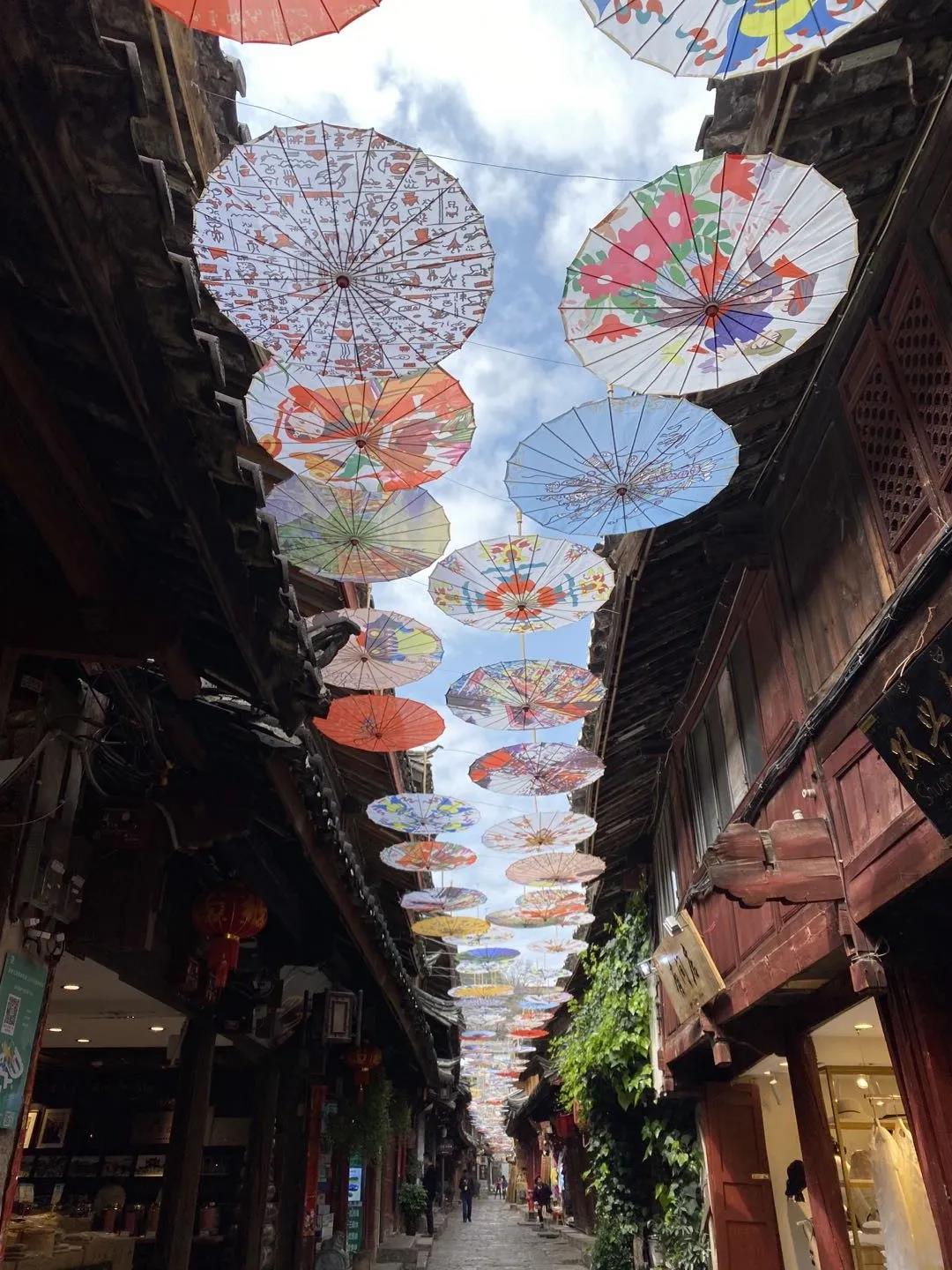 除了這些,古城里的各種巷子也是不可錯過的拍照好去處。掛滿了油紙傘的現文巷、別具特色的大研花巷……這些地方既可以看出古城的古色古香,也不會過于“游客照”,古城的包容也足以讓你拍出各種不同風格的旅行大片,可鹽可甜可古風,所以,拍照一定要走進古城的巷子中去。