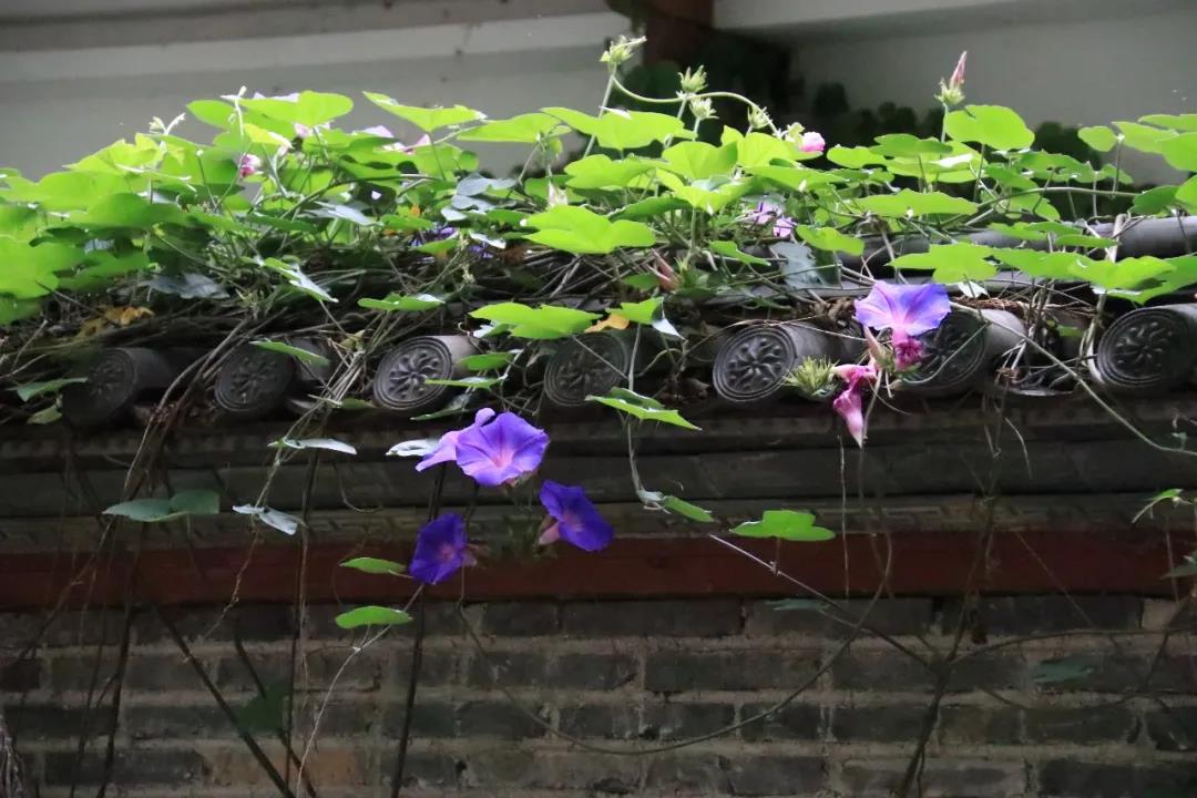 古城的夏天,當季的花朵開始綻放,牽牛花悄悄爬出墻頭,它們順著藤蔓悄悄爬到水邊,也許它也被流水的聲音吸引了。