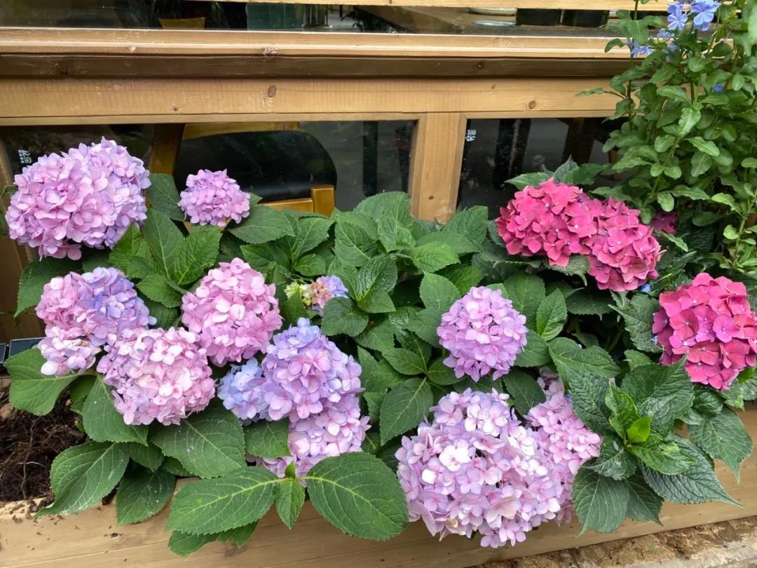 我認為所有的夏花中最美的就是繡球花了,繡球的花語是希望,這與夏天很般配,夏天孕育了莘莘學子的夢想,古城店鋪門口不同顏色的繡球花,像極了人們的希望呀!