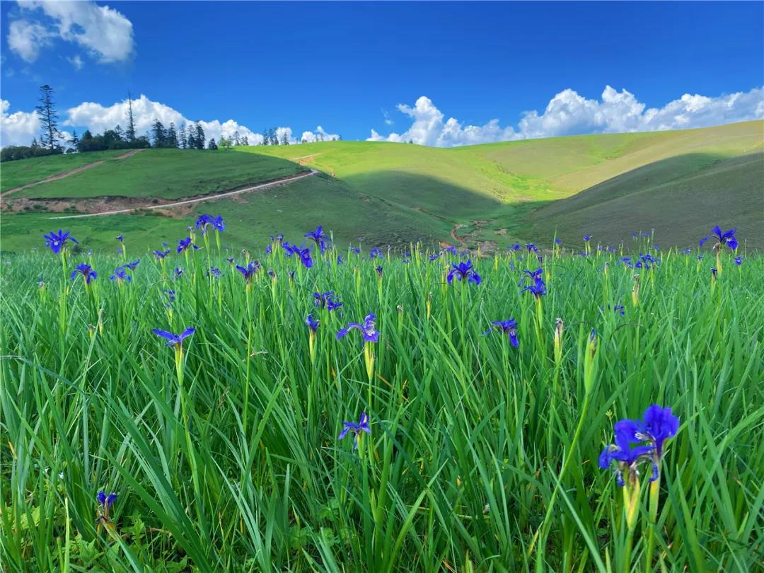 “嗡嗡嗡……”忙碌的小蜜蜂不厭其煩地在鳶尾花叢中“勞作”。時至七月,正是格拉丹鳶尾花盛開的季節。成片的鳶尾花散布在格拉丹草原的各個角落,與這里的脫俗景致相得益彰,散發出一陣陣清新淡雅、細膩溫和的美。