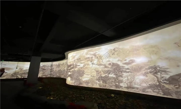 這里有亞洲第一百米納西風情數(shù)字長卷,它作為納西創(chuàng)世紀文化體驗中心鎮(zhèn)館之寶的《納西風情圖》,全長100米,高3米,從雪山秘境、桃源白沙、茶馬束河、署古黑龍?zhí)丁⒍κ⒋笱小⑽《肽靖⒋竺览泻F邆€板塊來進行呈現(xiàn)。