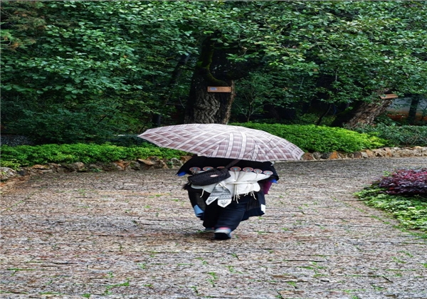 沿著清涼石板緩緩前行,看雨滴輕輕落在草地,空氣中也彌漫著淡淡的清香。是泥土香?是青草香?是木香?不管是哪種香,皆是來自大自然不加香料的原始香。