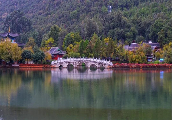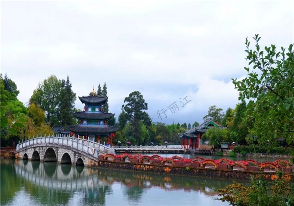 黑龍潭公園有著“麗江古城后花園”的美譽,方圓7.5公頃,園內亭臺樓閣錯落,花木相映,以山光水色取勝,清幽典雅,一派詩情畫意。