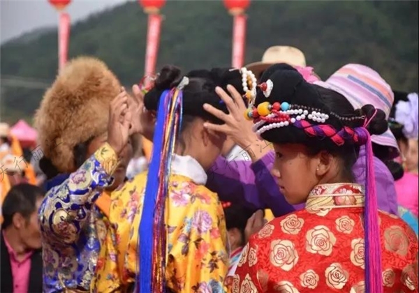 摩梭人把經幡獻給格姆女神,祈求來年的福瑞;繞著廟宇轉三轉,拋撒紅米包谷,祈求五谷豐登。