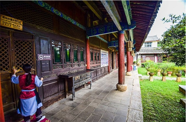整個博物館是在原來木氏家族土司的束河院古跡里建設的,屬于國家級重點保護建筑物。步入其中會發現整個格局按照皇宮式的走向與理念來建設的,給人一種庭院深深深幾許的感覺。
