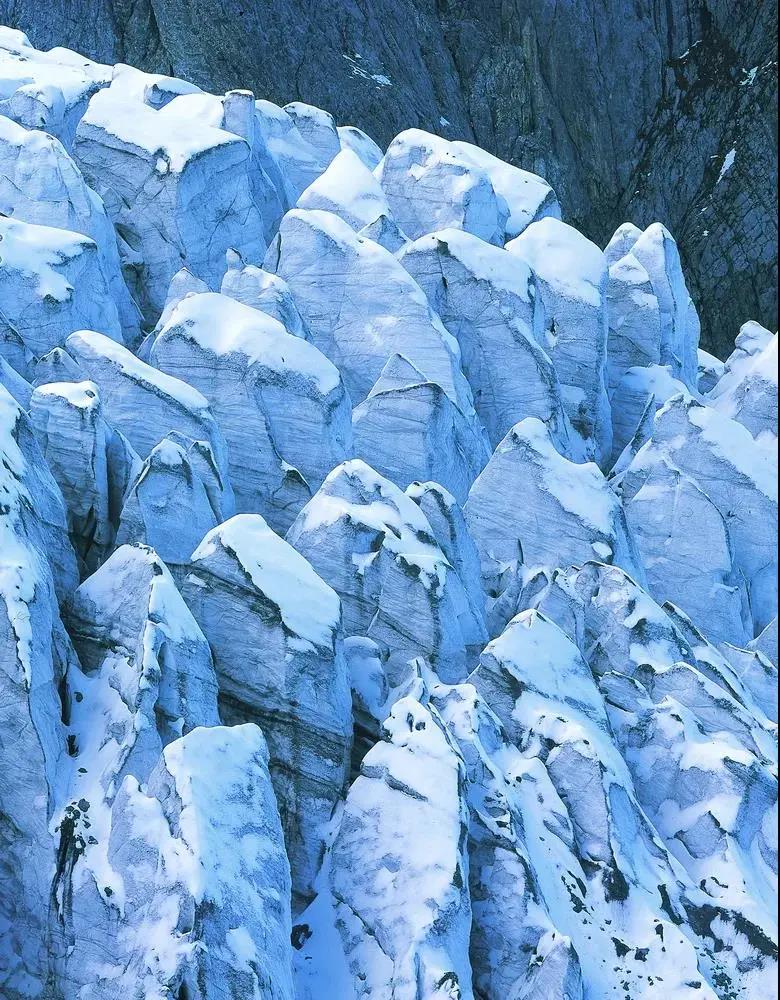 玉龍雪山分布著歐亞大陸離赤道最近的現代海洋性溫冰川和雪海,冰川類型齊全,發育的19條現代冰川中“白水一號”是目前最具游覽條件的冰川。