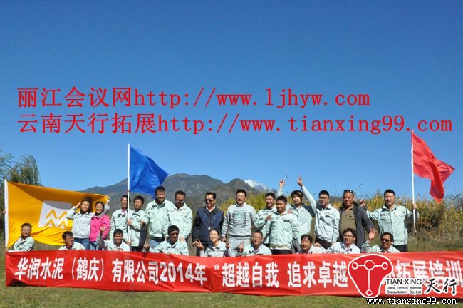 2014年10月31日,華潤水泥(鶴慶)有限公司中層干部戶外拓展培訓活動如期舉行,在麗江天行駝峰拓展基地及拉市海濕地公園拓展場地進行領導力、執行力等培訓課程。