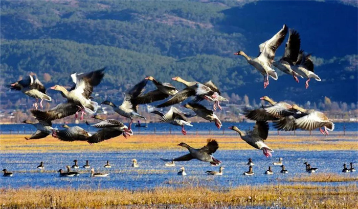 觀候鳥,是麗江人冬季的保留項(xiàng)目,每當(dāng)候鳥遷徙而來(lái),拉市海濕地公園就迎來(lái)了最熱鬧的時(shí)刻。成群結(jié)隊(duì)的候鳥,時(shí)而在天空中盤旋,時(shí)而在水中漂浮,場(chǎng)面十分有趣,這也是這個(gè)冬天最富生命力的瞬間。