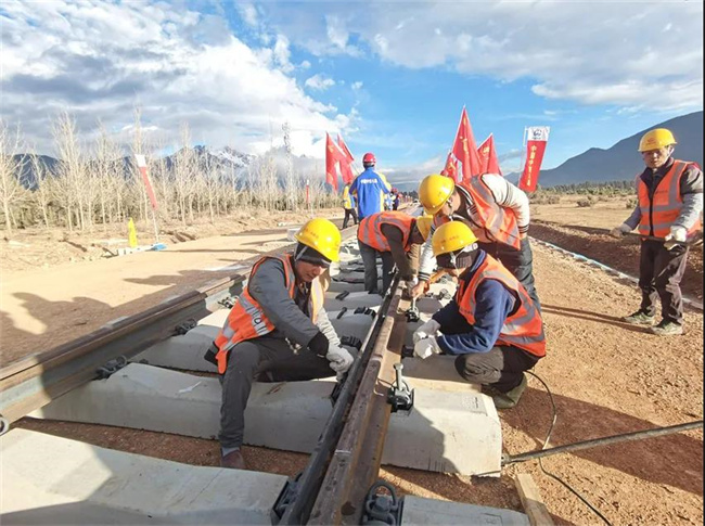 記者了解到,軌道鋪設采用人工散軌鋪設工法,充分利用槽型鋼軌自帶護輪功能的特點,克服了線路坡道長、坡度大、曲線半徑小的工程難點,保證了軌道穩定和行車安全;同時,全線采用無縫線路,以提高游客乘坐的舒適度。每天可完成120m單線線路的鋪設,計劃春節前完成7km軌道鋪設,預計2022年9月實現軌通。