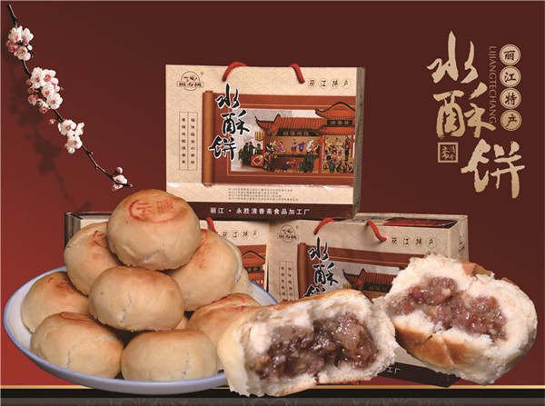 “制作水酥餅,用料很關(guān)鍵,所以選料這道關(guān),我們把得很嚴(yán)。用的豬板油、豆沙等原料都是自己親自去市場選購。水酥餅制作出來后,我們使用傳統(tǒng)灶臺火烤,從而保證味道純正,一下就能勾起大家記憶里的那種味道,我覺得這也是水酥餅傳承下去的意義。”談到“清香齋”的水酥餅,周玉華說。據(jù)了解,“清香齋”的水酥餅在制作過程中,采用傳統(tǒng)配制方法,溶入原料鮮豬板油,使做出來的水酥餅起到松脆、香酥、層酥相疊,味道不膩之目的。并在原有品種外,創(chuàng)新了水果蔬菜餡料餅,以各種鮮果和蔬菜為餡心主料,做出來的水酥餅餡心軟滑,餅皮松酥,風(fēng)味各異。永勝縣水酥餅,是一種技藝的傳承,更是一種手藝人的堅(jiān)守。全手工和繁雜的制作技藝,深受廣大市民的喜愛,是民間別具一格的特色糕點(diǎn)。和家人朋友享受一場終生難忘的舌尖之旅,水酥餅一定不會(huì)讓你失望。