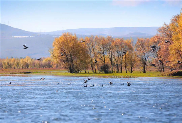 鳥兒們成群結隊從遙遠的北方故里來到這里,和本地鳥在一起,在湖泊、沼澤、山林、草甸里自由嬉戲,捕魚捉蝦,一派祥和景象。