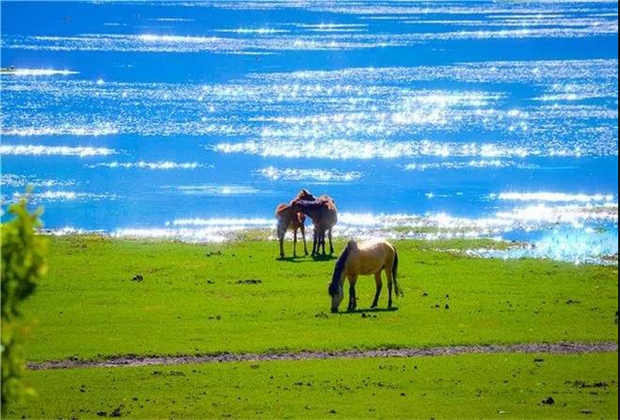 遠處牛馬成群吃草,鳥兒越過天際傳來陣陣鳴叫,一派生機盎然,令人心醉。