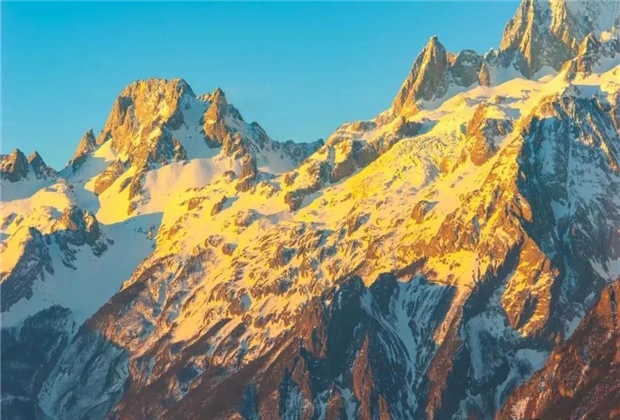 雪山上常年覆雪,冰峰閃爍,莊嚴且肅穆,每一個來麗江的人都能一睹它的尊容、它的艷麗,讓人感嘆的同時又倍感親切。