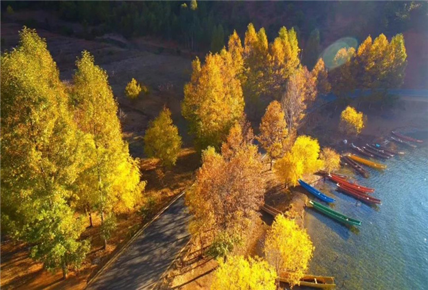 晚熟的黃葉不慌不忙的點綴了麗江的冬日