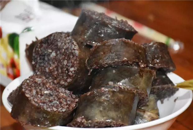 米灌腸也是殺豬時(shí)節(jié)必做的一道美食,把煮熟的米倒入大盆,加豬血、茴香、花椒粉、鹽等調(diào)料,攪拌均勻之后灌入洗凈的腸子中,灌好之后就可以上鍋蒸熟。