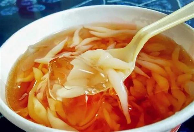 一勺涼宵,一勺冰粉,再加上紅糖水橘子粉,這一碗可口的飲品代替了冰柜里的飲料,炎熱的夏天來(lái)上一碗,解膩又解渴。