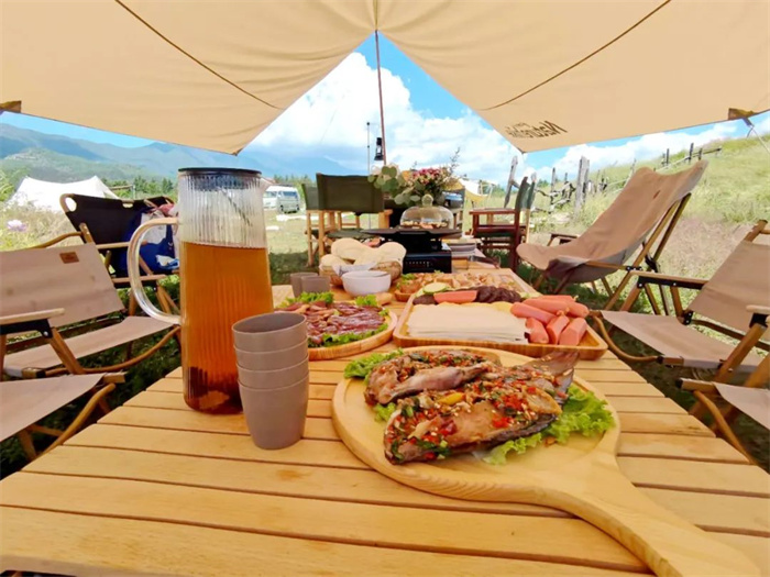 跟著麗江小眾露營,麗江野奢露營,麗江野奢午餐,麗江高端野餐小編一起來看看吧!玉龍雪山腳下的最美星空露營地“山食野宿”你還沒來過嗎?位于白沙旁的山食野宿是由一位納西姑娘打造的戶外露營地,化賩、露營、聚會……你想要的新玩法這里都有!午餐可以選擇戶外帳篷里的BBQ五花肉、牛肉、魚肉,各類時蔬,跟三兩好友一起在藍天白云下,享受美食和美景帶來的快樂
