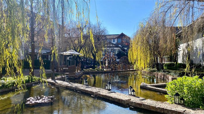 麗江悅云別院以人文院落建筑、麗江本土風情和農耕文化景觀為基調,擁有84幢精致庭院別墅共計138間客房,有種江南小家碧玉感的園林風格。楊柳拂風,鮮花盛開,滿園都是美好的景致。酒店種植了很多不一樣的鮮花,有櫻花、玉蘭、桃花等,每個季節都有滿園的鮮花盛開。這次在酒店,我竟然還看到了還沒開敗的玉蘭花。