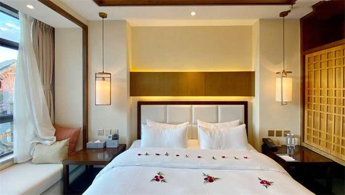 酒店的位置,是相當優越的。位于香格里大道北段369號,是麗江大研古城至束河古鎮的必經之地。所以無論是去束河還是大研,都相當方便。束河更是只需要5分鐘的路程。酒店身處古城繁華周邊,與喧囂保持了距離,守住了寧靜和私密,又兼顧到了方便,是麗江旅行下榻的絕好選擇。人文與奢享,在此完美統一。另外酒店的翻新工程正在逐步進行,到時候客房風格、設施等會有一些新的變化,大堂的煥新工程據說也提上日程了。除此之外,酒店在今年會成立管家部,到時候會有“一價全包”的全新體驗,可以深度麗江的風景和人文,拭目以待吧!
