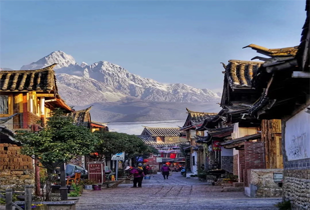 白沙古鎮是玉龍雪山腳下一個古樸原始的納西族村落,屋舍大都是木制夯土結構,歲月雨雪風霜的痕跡一覽無遺地顯露在老舊的木頭上。因地表多白色沙粒而得名,納西語稱“崩時”,是麗江第一大家族即麗江土司“木氏家族”的發源地。?