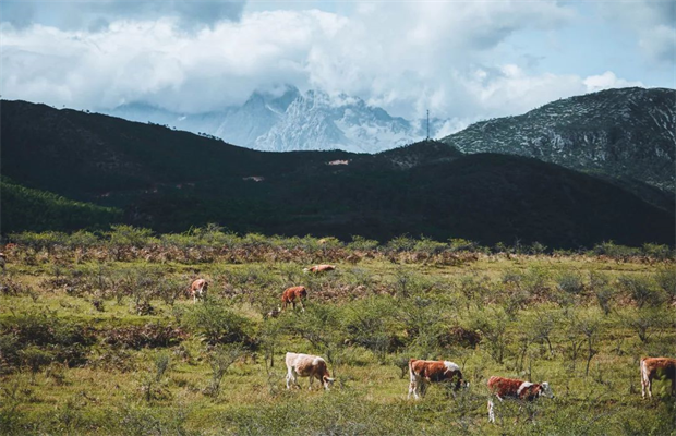 在壩子深處,溪流和聳起的土地,將草甸分出兩半,一半詩意,一半生活。一側草野風光無限好,一側是田園豐收正忙。