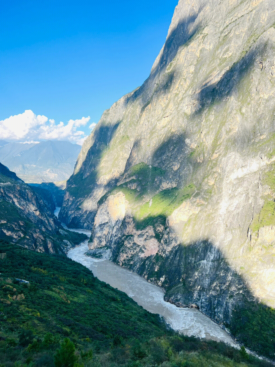 就是28道拐的至高點(diǎn)了,可以清晰看到峽谷對岸玉龍十三峰的真容。