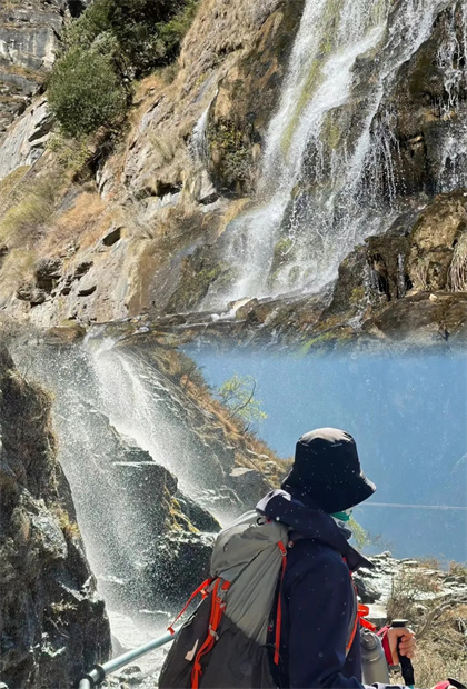 “觀音瀑”——整個(gè)虎跳峽徒步的精華,驚險(xiǎn)的懸崖石板路,美麗的瀑布從山間傾瀉而下。這條山澗從高處流下來,直接砸在徒步道路上,然后漫 過路面,形成下半截瀑布繼續(xù)跌下懸崖。繼續(xù)前行,我們會遇到一座觀音廟。廟里可以燒香祈福,隨喜功德。觀音廟下方有一家咖啡店,喜歡 咖啡的朋友可以稍作休息,享受一杯香濃的咖啡。