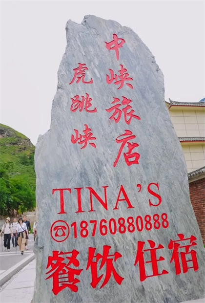 沿著哈巴小路,朝著中峽旅店(Tina’s)方向前進(jìn),那里離我們的目的地中虎跳最近。我們走的這一段路程通常被稱為“哈巴小路”,得名大約是由 于這條路是沿著哈巴雪山 一側(cè)的虎跳峽北岸蜿蜒。1998年Tina's中峽青年旅舍開始正式營業(yè),老板與老板娘一人打工,一人守店。營業(yè)之初大部 分客人是外國人,語言不通,溝通不暢,營營役役。于是,有香港客人提議改英文名字。老板娘姓田(tian),遂起名Tina。