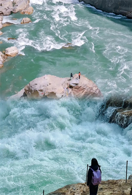 在這里,你可以選擇從一線天或天梯下到江邊,然后再從天梯或168級勇者梯爬上來。 站在中虎跳的岸邊,你會親身感受到蘇軾筆下的描繪: “亂石穿空,驚濤拍岸, 卷起千堆雪”。