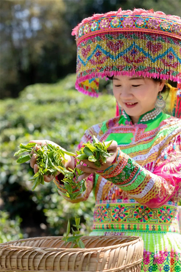 簍,手指如蝶般輕巧地掠過茶樹,只輕輕一掐,最嫩的春色就被收入簍中。遠處傳來悠揚的采茶調:“三月鷓鴣滿山游,
