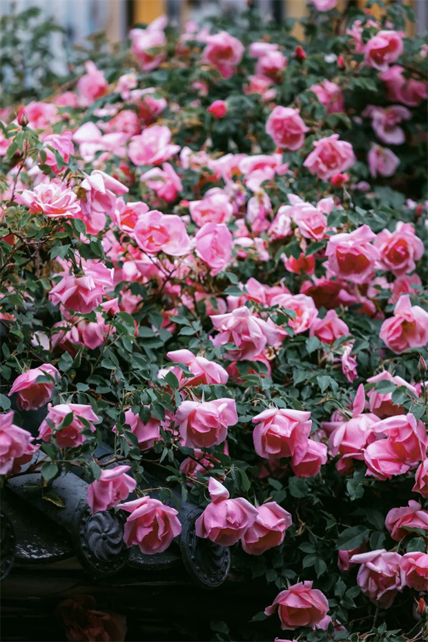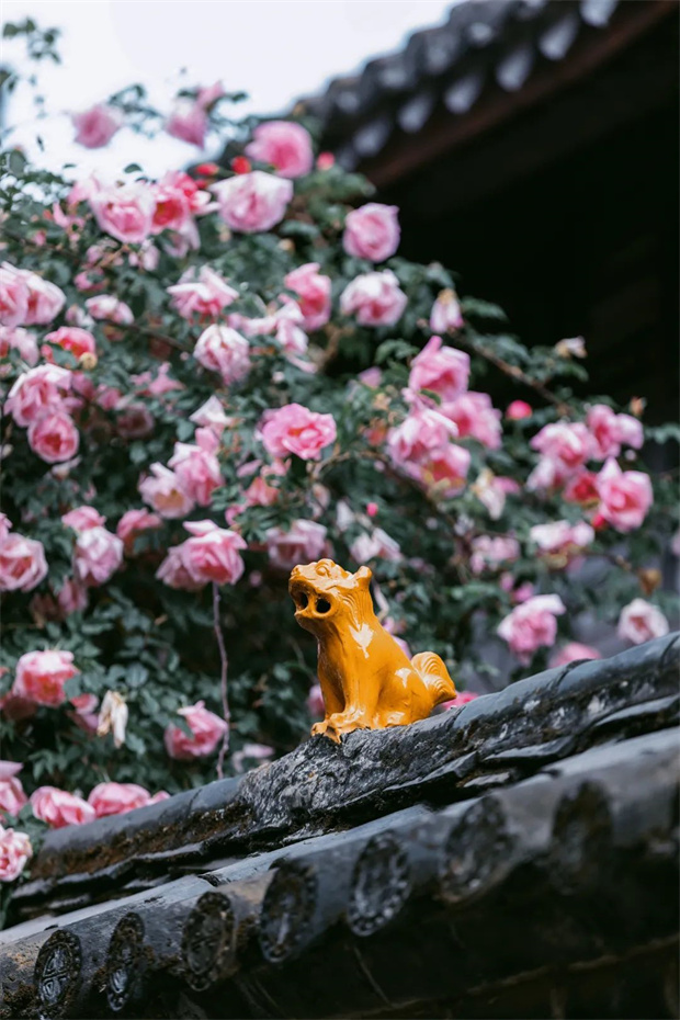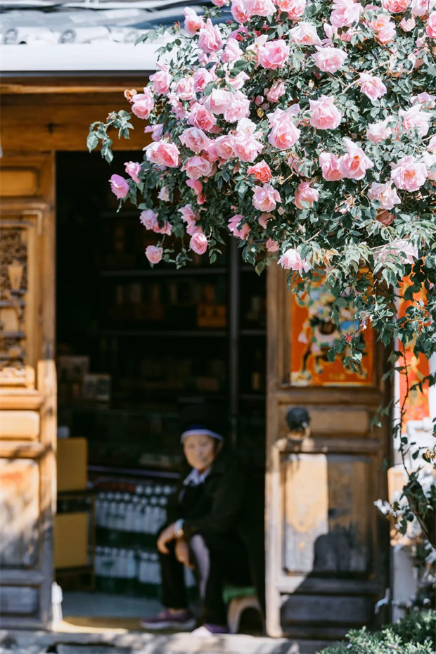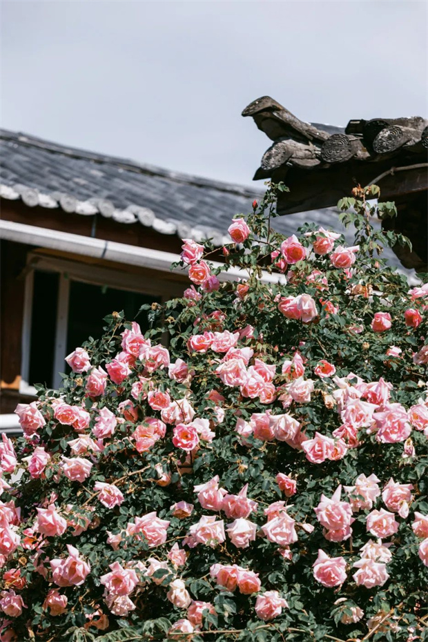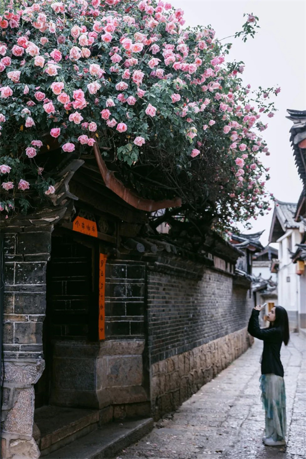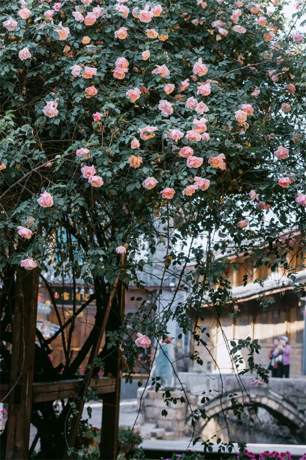 最令人稱奇的是它野蠻生長的姿態。在江南需精心呵護的月季,到了麗江竟顯露出驚人的生命力——一藤便能成景,孤