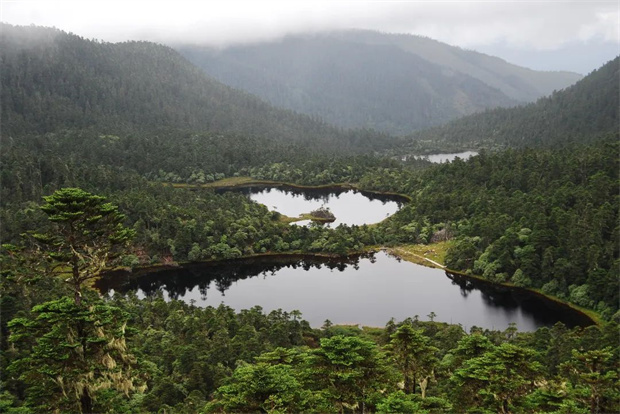 九十九龍?zhí)对旗F時(shí)濃時(shí)淡、湖泊山影流轉(zhuǎn),如同一幅珍藏的水墨畫卷。順著山路蜿蜒而上,途經(jīng)原始森林、高山草甸、