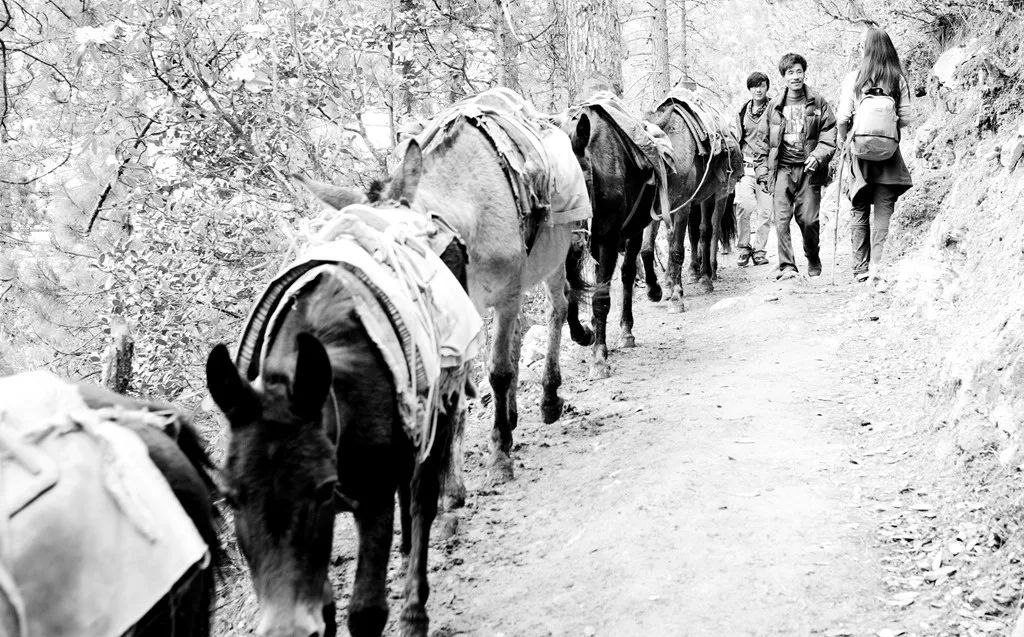 徒步六小時,當(dāng)我們站梅里雪山腳下的時候,彷佛雪山的神秘在此刻得到了全部的解答。雨崩人維持了幾百年來的農(nóng)耕畜牧的傳統(tǒng)生活方式。木質(zhì)結(jié)構(gòu)的平房,用山石搭建庭院的圍欄,悠然行走于土石路上的牛羊與騾馬,無不顯示著這個村落的與世隔絕和寧靜安詳。