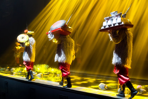 《麗水金沙》共分四場:“序”、“水”、“山”、“情”。在這樣一個美麗的夜晚,山地民族以他特有的寧靜與祥和,還你大自然的靜謐與和諧;在這一片輕歌曼舞中,帶你走進心的旅程,領略天人合一的萬種風情。