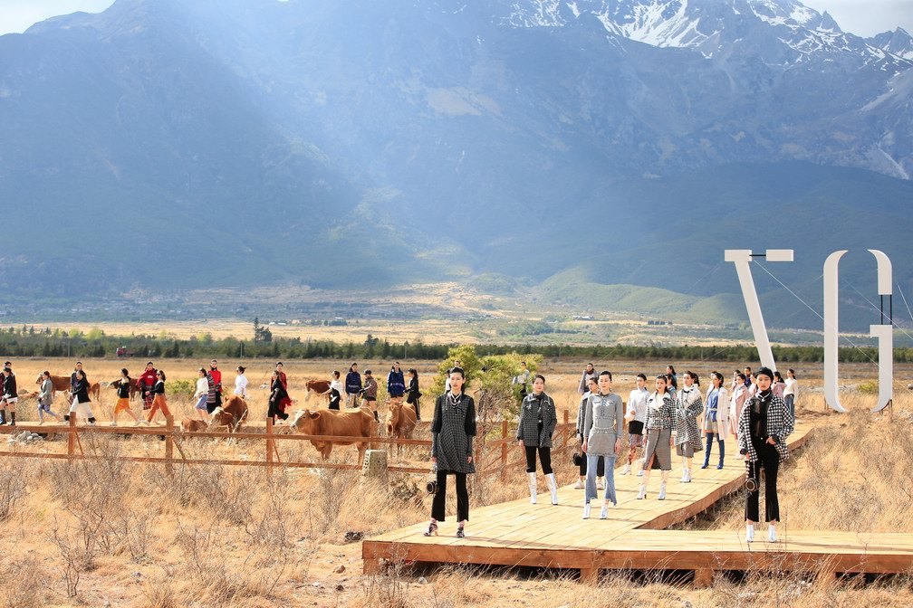 玉龍雪山連綿不絕,氣勢壯麗磅礴,是納西族及麗江各民族心目中的圣山,更是麗江最具標志性的景觀。XG此次發布會結合了高原廣袤超前的自然視野,將時裝與自然、傳統與現代、摩登與民俗融入在雪山之下,舉辦了一場空前震撼的新品發布會。