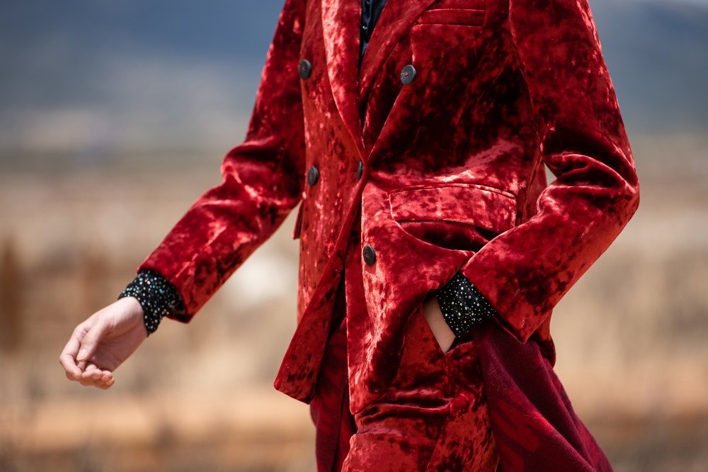 本次發布會特邀了著名舞者楊麗萍的御用鼓舞表演團隊,深邃而又極具張力的擊鼓聲震撼開場,以最原生的動作,質樸的聲音,與天地共舞,模特在嘹亮透徹的歌聲中踏著音符的律動緩緩出場。整場表演極具特色和民族文化氣息,仿若堆疊在千年時光里,以古今結合的藝術表現形式向中國最悠久的文化傳統致敬。