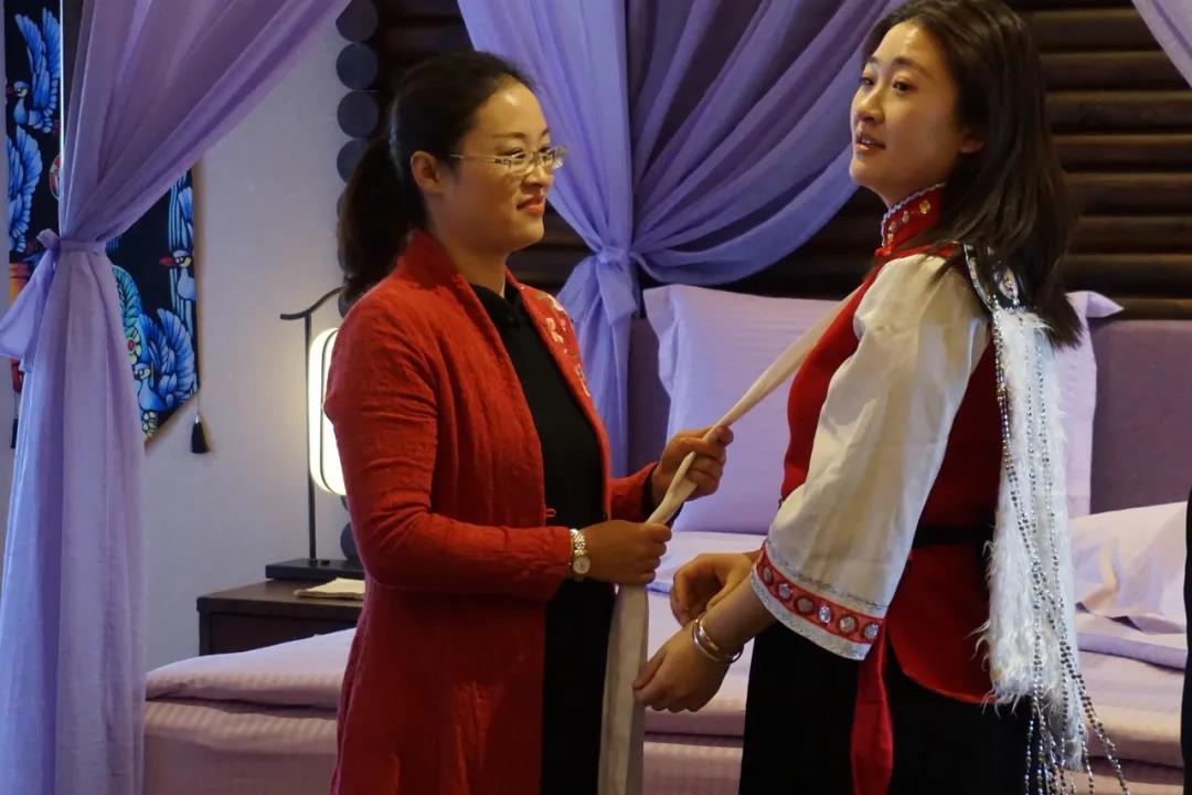 石蕊初來麗江,也不例外,大管家艷姐提前為蕊蕊精心挑選了一套最有特色的“披星戴月”服飾,一大早便親自為蕊蕊梳妝打扮。