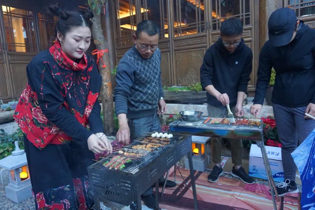 夜幕降臨時(shí),燒烤架架好了,此時(shí)庭院的氣氛也歡騰了起來。
