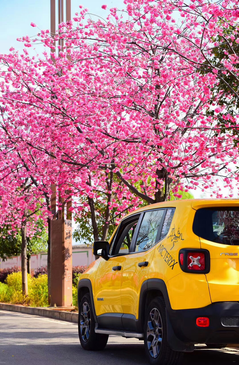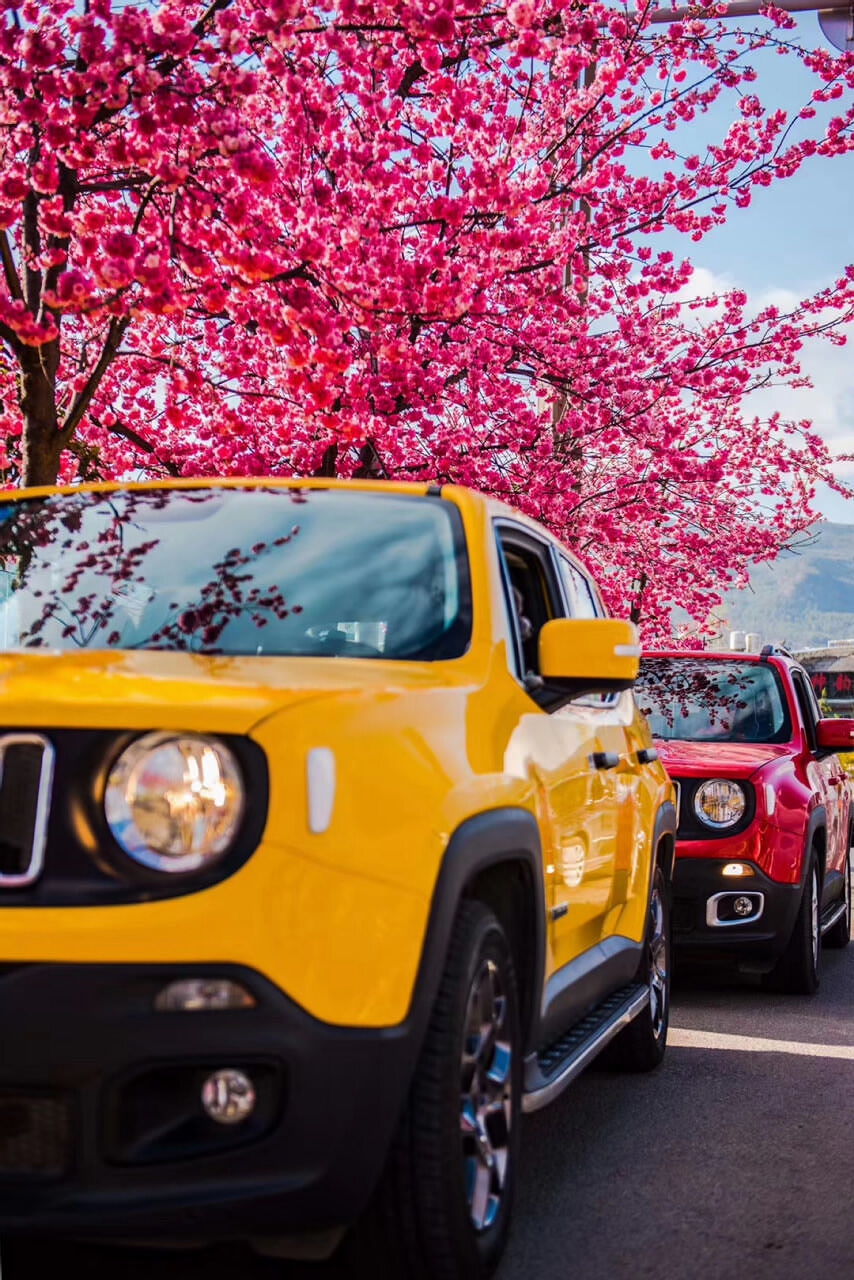 麗江的三月 櫻花開的季節 純潔爛漫 汽車試駕正當時