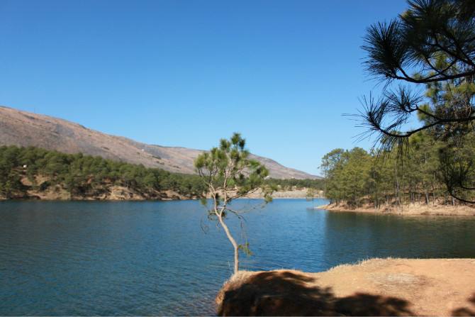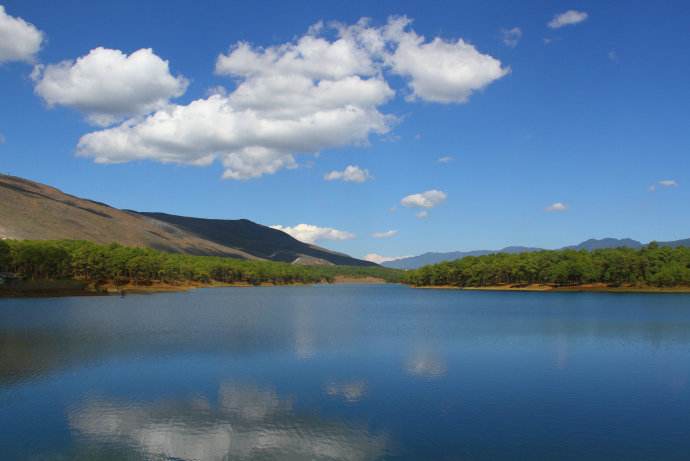 在云南省大理白族自治州北部靠近麗江的地方,有一塊狹長形的大壩子,叫做鶴慶壩子。壩子西側(cè)的高山腳下,矗立著的就是與壩子同名的縣城——鶴慶縣城。鶴慶壩子里分布著大大小小的龍?zhí)叮噙_(dá)上百來個(gè),所以被稱為“龍?zhí)吨l(xiāng)”。尤其以大龍?zhí)丁⑽鼾執(zhí)丁ⅫS龍?zhí)哆@三個(gè)為佳,我們此次徒步的路線也就是三大龍?zhí)吨淮簖執(zhí)丁4簖執(zhí)叮挥邡Q慶縣東北部的辛屯鎮(zhèn)逢密村,緊鄰麗江三義機(jī)場,大龍?zhí)妒且粋€(gè)“西南--東北”走向的狹長形水庫,除了西南端的大壩之外,其余三面都處在青松環(huán)抱之中,生態(tài)環(huán)境及其良好,也少有人來打擾。