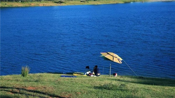 坐在大龍?zhí)哆叄憔头湃巫约旱难劬Π桑§o水橫呈,在微風(fēng)輕拂下,蕩起魚鱗似的波紋,對岸的松林,墨色如染,沿著岸邊排列開來,整齊得像等待檢閱的士兵,高處是純凈的天空。著名的莎士比亞著作翻譯家朱生豪先生對他的愛人宋清如說過這樣一句情話;要是有那么一個(gè)好地方,我們在一起靜坐一天可好。