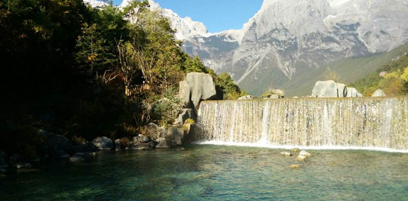從甘海子到云杉坪之間,有一條幽深的山谷,谷內林木森森,清溪長流,谷底清泉長流的河,就是白水河。因河床、臺地都由白色大理石、石炭石碎塊組成,呈一片灰白色,清泉從石上流過,亦呈白色,因色得名“白水河”。白水河之水來源于四五千米高處的冰川雪原融水,清冽冰涼,據(jù)說白水河的水來自玉龍之口,帶有靈性。