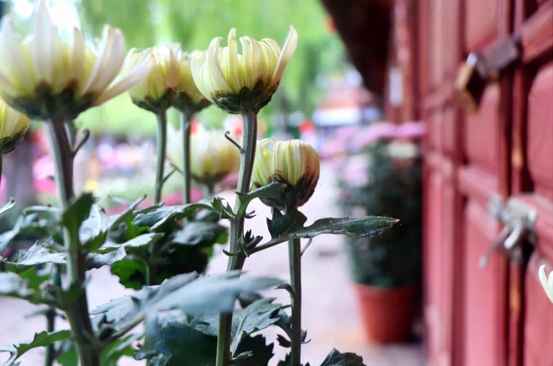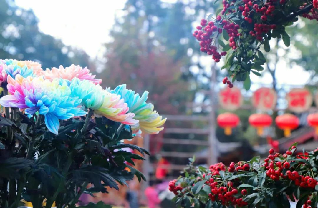 在古城街道、橋頭、岸邊,一盆盆五彩繽紛的各色菊花婀娜多姿、競相綻放,與古香古色的古城相得益彰,構成了一道繁花似錦的亮麗風景線。