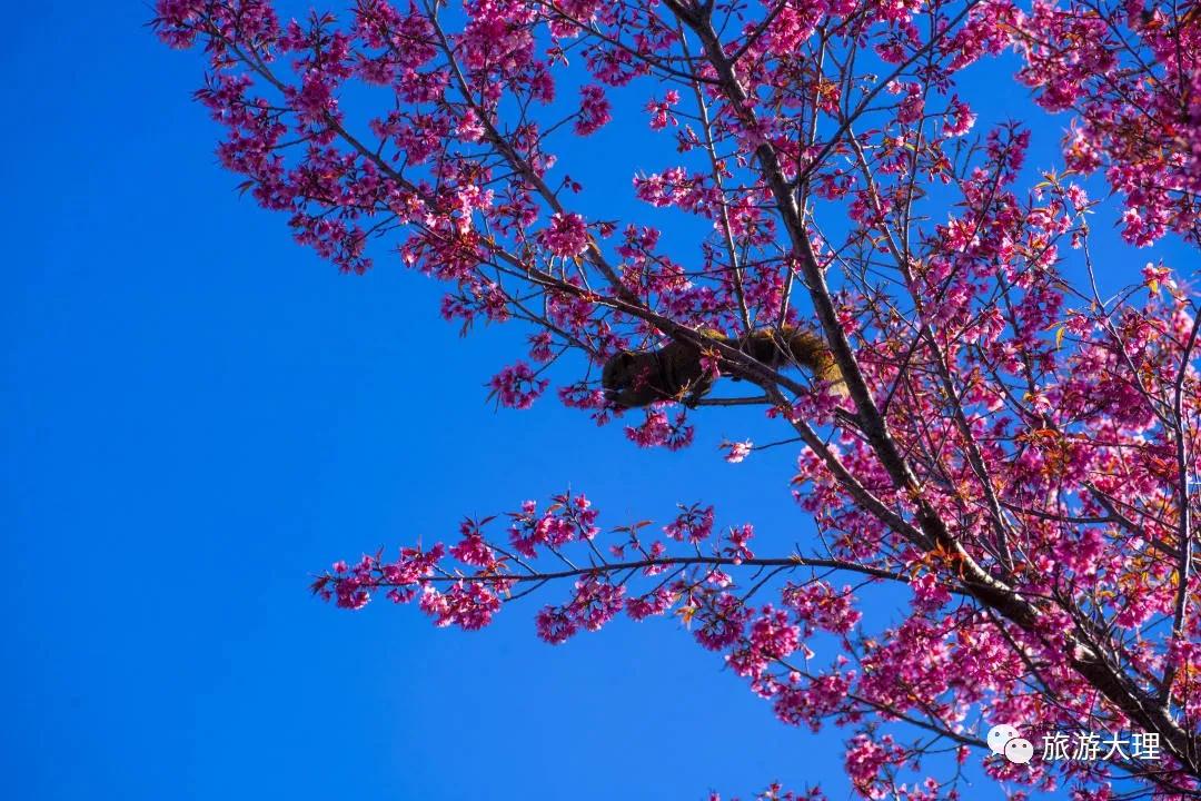 崇圣寺三塔文化旅游區里,銀杏葉剛剛落畢,冬櫻花就迫不及待的開了。在三塔下面的樹林里種了很多冬櫻花,即使是冬季,這里綠樹紅纓相間,一片“春色”。帶上家人、朋友們來到這兒,不但可以賞櫻花拍照,還可以游覽崇圣寺三塔。