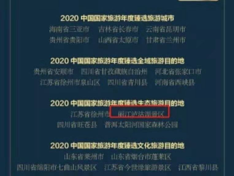 近日,2020第五屆中國國家旅游年度榜單重磅揭曉。本屆榜單共發布33個獎項,麗江瀘沽湖景區榮獲“2020中國國家旅游年度臻選生態旅游目的地”。據了解,榜單評選活動由《中國國家旅游雜志》主辦,旨在樹立旅業標桿、傳播行業正能量,以榜樣的力量推動中國文旅市場良性發展,迄今已成功舉辦五屆。