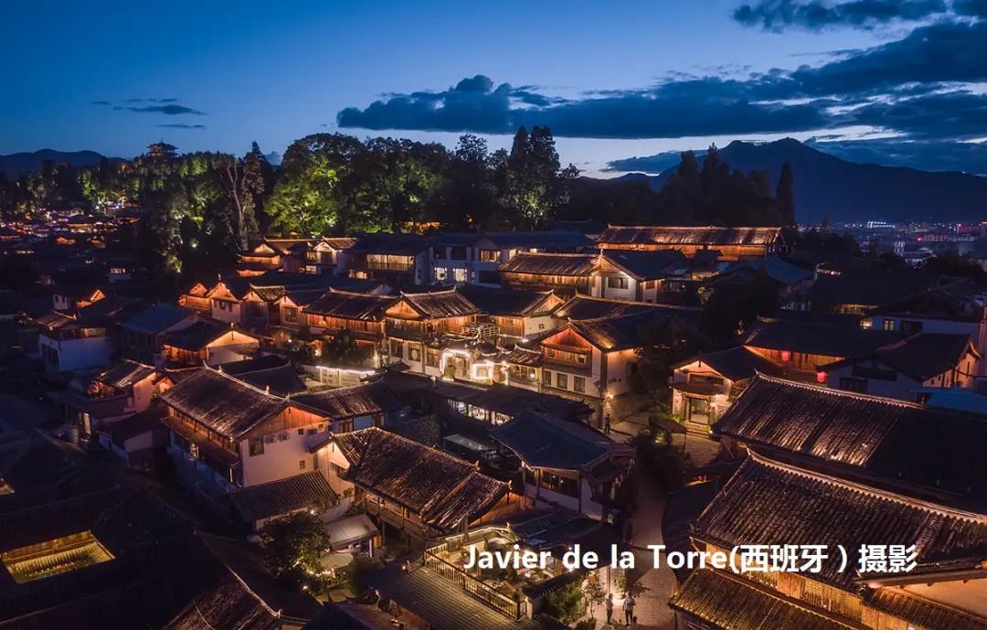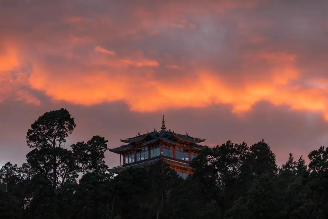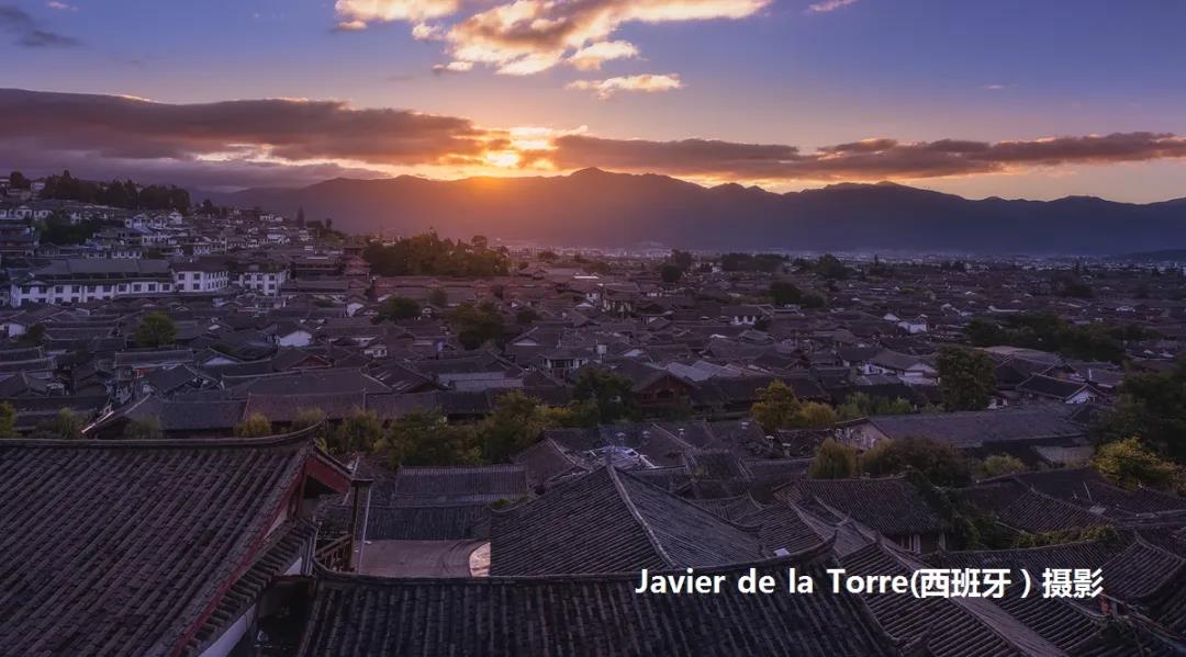 日漸西移,倦鳥知還,麗江古城進入了另外一個華美的世界。滿天的晚霞,像是給這座古城披上了一層金紗,夜晚來臨之前的時刻,明與暗的光影交錯,似真似幻。