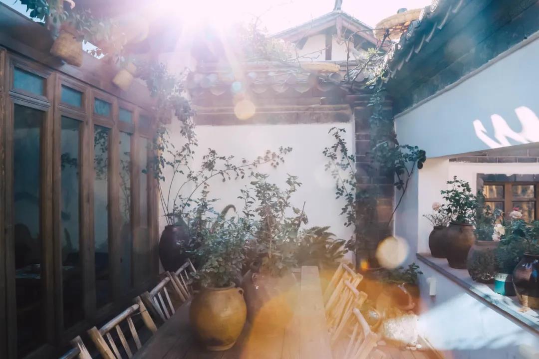 這時候的天空就像被一瓶打翻的藍墨水暈染開來一般,碧空如洗,天高云淡,眺望遠方時,還可以看見高聳入云的玉龍雪山。